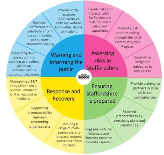 - To write and maintain the Staffordshire Prepared Multi-Agency plans on behalf of the Staffordshire Category 1 responders as defined by the Civil Contingencies Act 2004